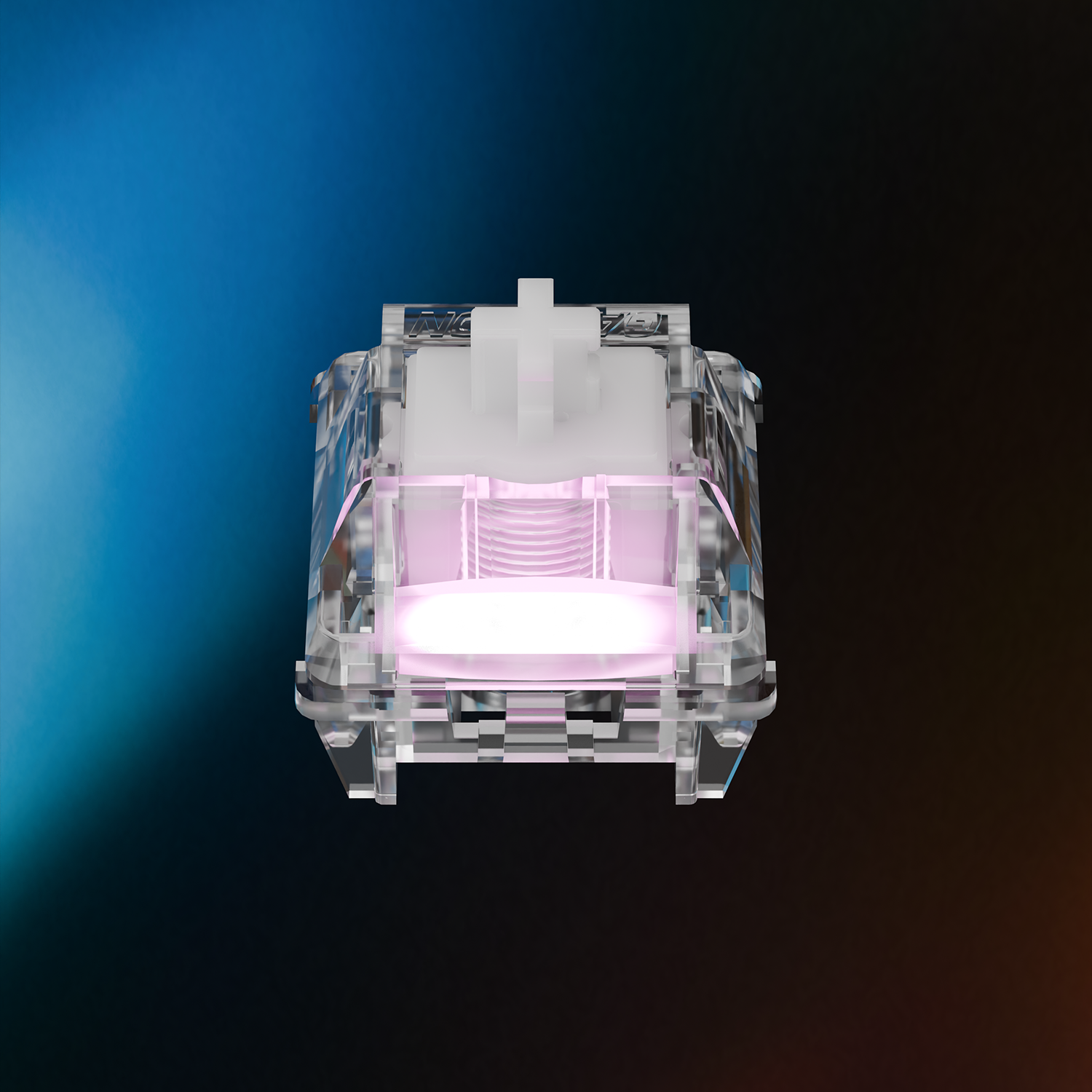 Full-transparent housing with white stem Achieving crystal clear transparencySeamlessly synchronized with RGB illumination Delivering immersive fluid-light visuals