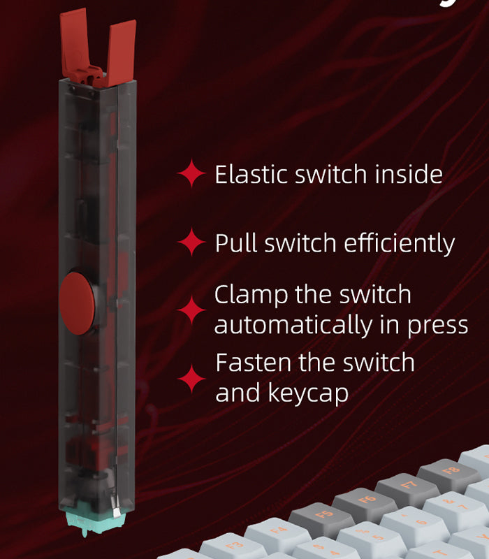 - [잡기 쉽고, 빼기도 쉽습니다] 스위치와 키캡을 빼낸 후에도 도구가 여전히 고정되어 있어 스위치와 키캡이 떨어져 분실되는 것을 방지합니다.