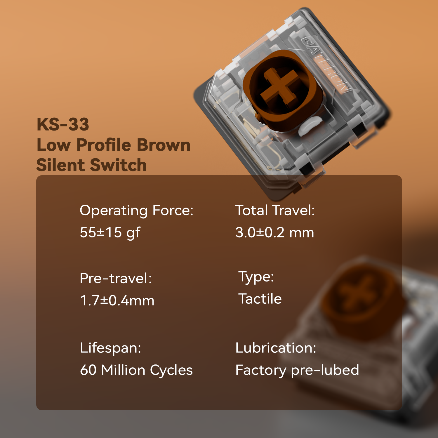 This silent, low-profile switch set is engineered for reduced noise and faster actuation in compact keyboard layouts. Each switch features a pre-lubed internal structure with a short 3.0mm total travel distance and 1.7mm pre-travel for quick response. The transparent top housing supports SMD LED lighting, while the reinforced 5-pin configuration ensures secure installation and reduced wobble. Available in both linear and tactile variations to match user preference.